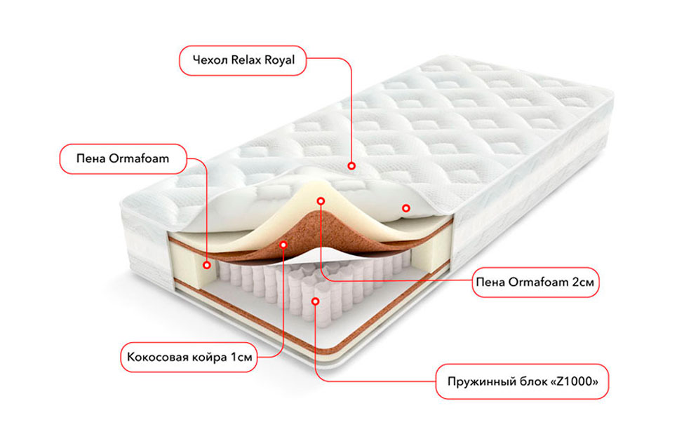 - Сочетание современных высококачественных материалов — OrmaFoam и кокосовая койра — придает матрасу оптимальную среднюю жесткость;