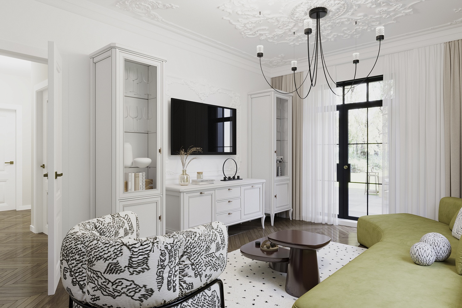 – описание: цвет бело-серый, стиль неоклассика, назначение для гостиной, размер 214.8x287x50.5 см.
