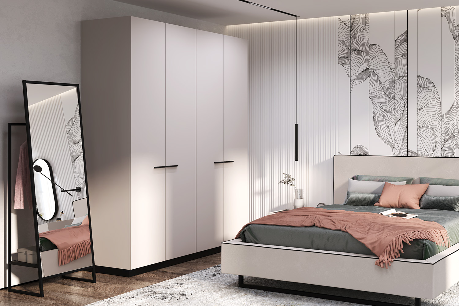 – описание: цвет кашемир серый, черный графит, размер 229.1x90x61.1 см, стиль современный, минимализм, назначение для одежды.